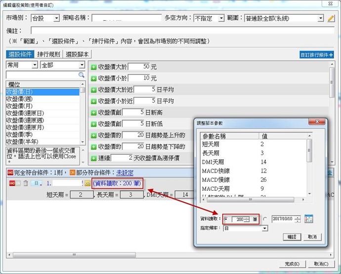 有點複雜的選股條件如下( 這不是選股腳本範例腳本喔! ):