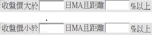 收盤價大於( )MA且距離( )%以上,