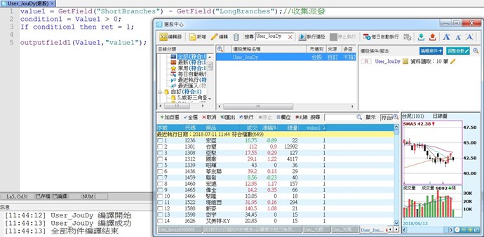 2. 選股中心執行此選股腳本的選股策略畫面,因需查看您的資料筆數與頻率是否有問題。