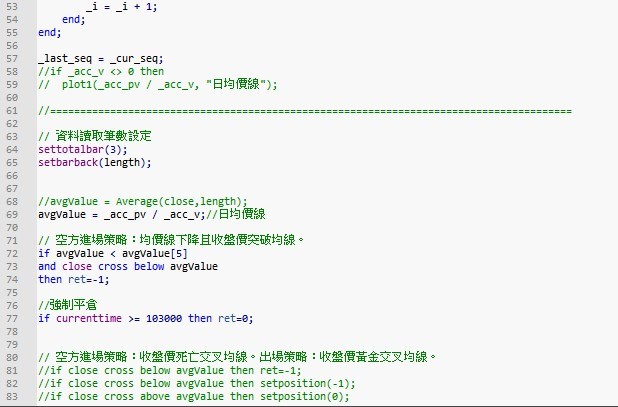 請問,在編輯器內,如何表示日均價線斜率,我想在下單條件內除了close突破均價線外,還要多加一條件均價線斜率<0。另外如何編輯在某一時間強制庫存出場(不論當下價格)。謝謝