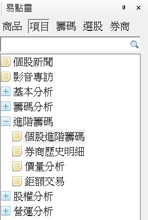 ▶在商品上按右鍵選擇"進階籌碼"的易點靈畫面: