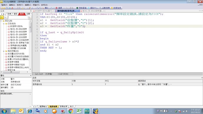 昨量(如下)不能用於警示腳本,請問如何解決。