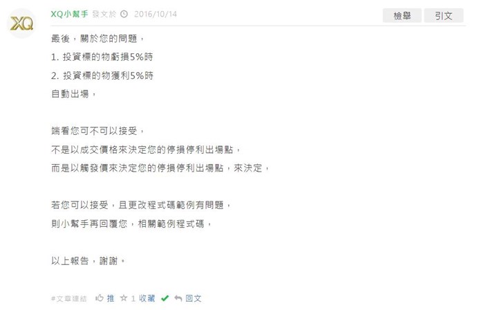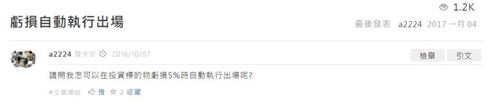 您好,虧損自動執行出場的架構,如以下此篇文章所述,提供給您參考,謝謝:
