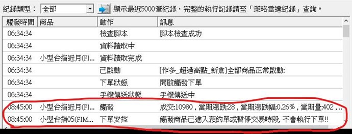 是否觸發時間在08:45:00就會出現下單安控而不下單的情形,如下圖