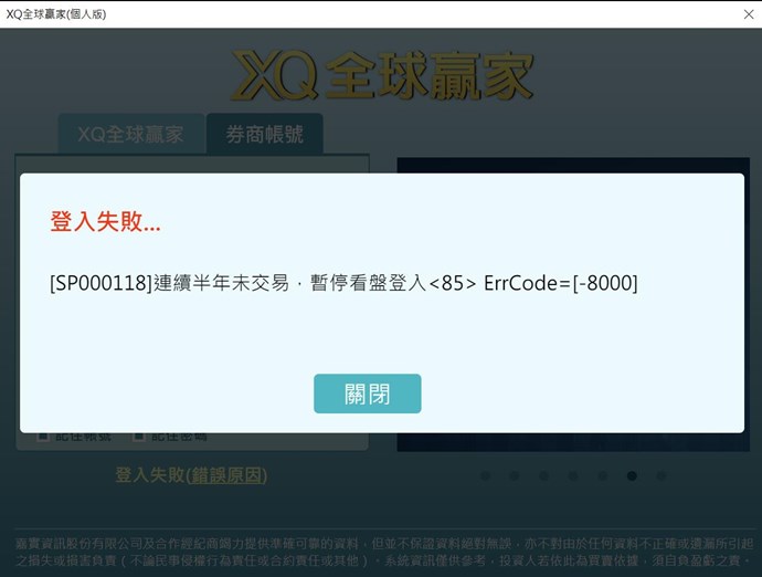 今天要登入XQ 統一證券帳號, 卻說連續半年未交易暫停登入