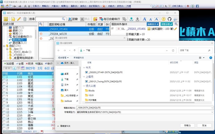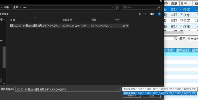 而在 3.15.02 250102 版本,選股中心匯出選股策略的副檔名是 *.DSTX_DAQXQLITE,