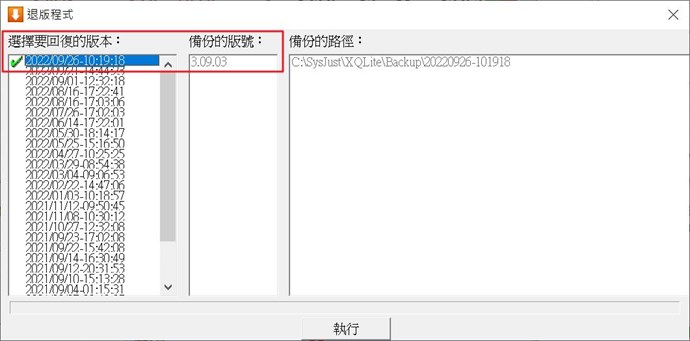 1、若未手動移除XQ安裝資料夾,可以再執行一次功能表的"設定→退版程式",並選擇回復 3.09.03 版本(如下圖)。