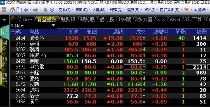 小弟的自訂頁籤,常設有強勢股、弱勢股、重心股.....,