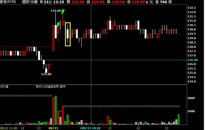 條件如下:(註:圖示成本標示紅色線 最高價標示為"綠色閃電"符號,最高量標示黃色圈圈)