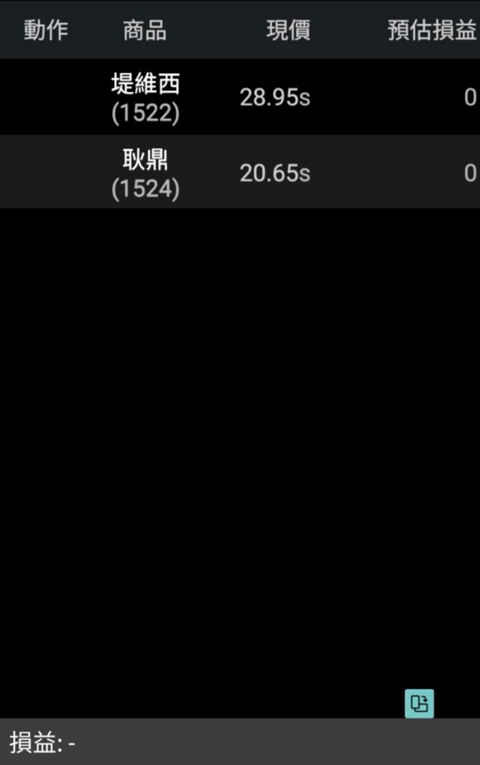 早上自動交易策略建立無券現沖部位後,當下看手機版還有顯示部位與損益。