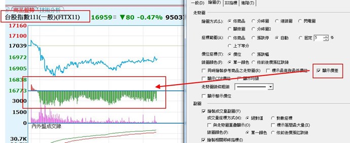 似乎這才是合適的設定 有明確的數值 也有圖形 非常好 (唯一美中不足就是差一個顏色對比的差異 譬如:正價差 紅色 逆價差時 綠色 不過已經可以了)