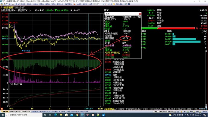 最重要是要即時看出兩者 : 加權指數+台指期 價差的變化!