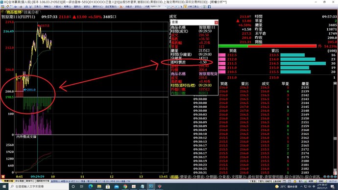 2).除非主動用游標十字線去點擊位置 才會有查價框出來 看到該點的靜態價差數值 但又擋到右邊資訊 而且不會隨行情即時變動(不會變化)