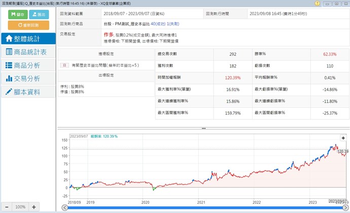 1.您好我想計算過去一檔股票本益比的標準差,當目前本益比低於過去5年一倍標準差時買進,但回測結果2021/3以前都沒有資料,想了解這樣的寫法是否有誤,謝謝你們幫忙!