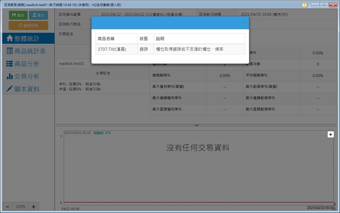 我在4/22回測print 讀取tick內容都還可以正常讀取(一分鐘頻率)(逐筆洗價)