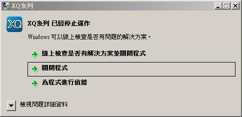 (3) 關閉 XQ 出現 異常關閉對話方框 , 最後得到一個只有 2MB 的 Log