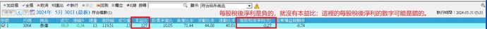 只要到你們的資料庫 調出 這支股票的本益比跟每股稅後淨利的數字,如果每股稅後淨利是如同選股中心的資料是負的,也就是賠錢,那就沒有本益比。