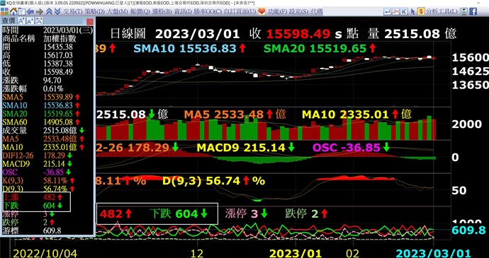 以下是我寫的指標腳本,直接查詢與繪製上漲、下跌、漲停與跌停家數,