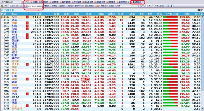 如題,我要將系統內建的概念股報價整個直接加入自選內,請問有人知道如何操作嗎??例如:軍工概念股直接抓到書籤欄位上或是加入自創的書籤頁內,懇請知道的人幫忙解答,謝謝