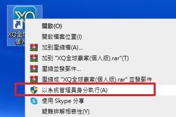 您好,可以在XQ的執行程式截徑上點選滑鼠右鍵,再點選「以系統管理員身分執行」試看看。謝謝!