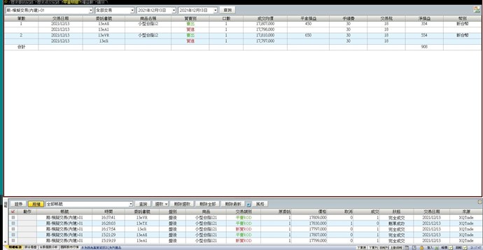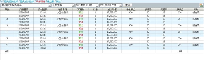 請問用用模擬交易帳號進行小台指當沖交易。如何看到各次或總和之盈虧值?謝謝