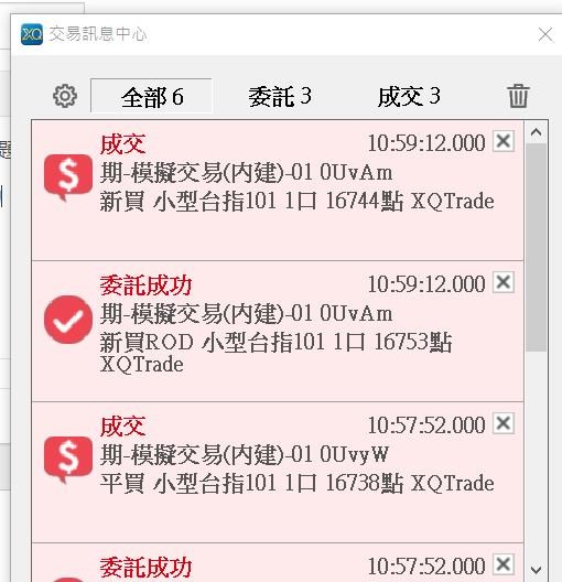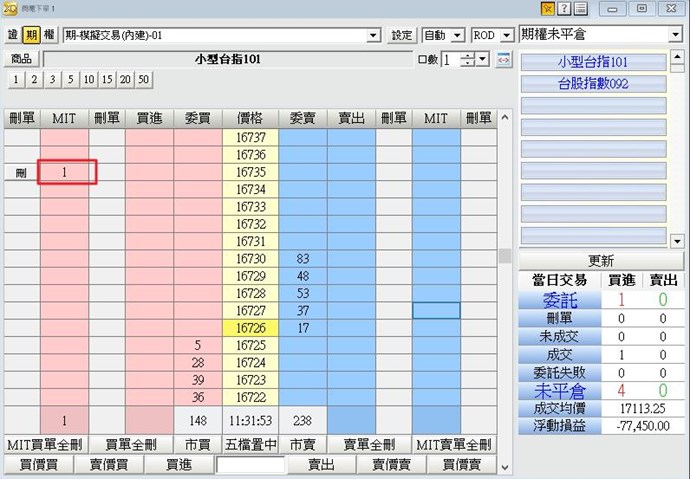 然後剛剛用MIT下單的時候依樣使用模擬交易買進委託16743然後10檔也就是16753的單 結果16753的單直接成交成功