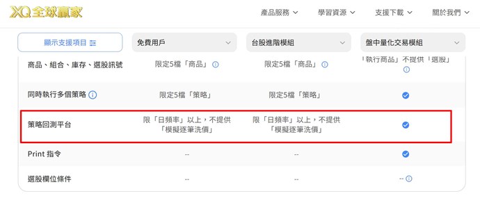 請問,我想把我的台股的個股交易策略,目前是以30分K為進出場依據,訂閱台股進階模組是否有包含可回測交易策略的功能。