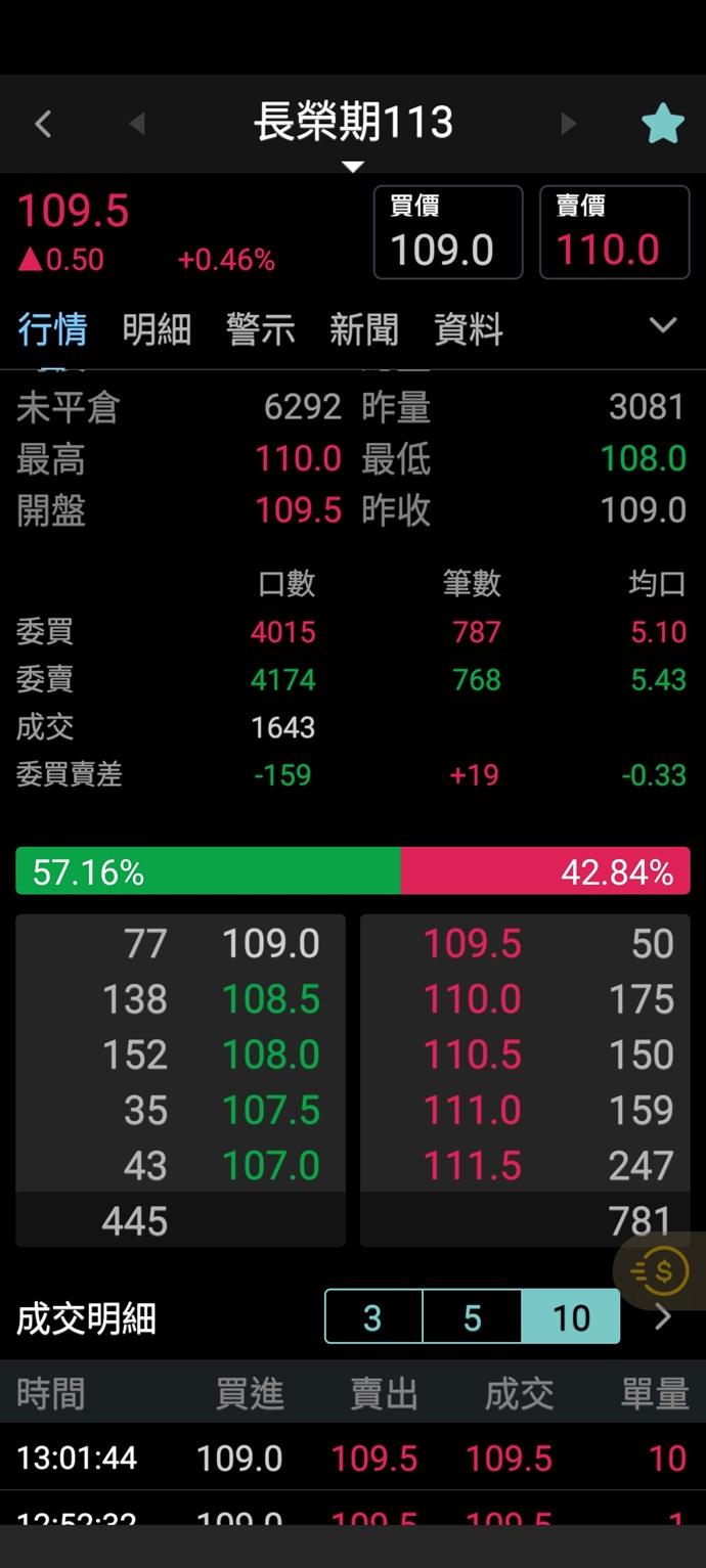 期貨除了五檔,還有一個衍生委託單,所以報價有時候顯示的是衍生委託(這個在電腦版有揭露)。