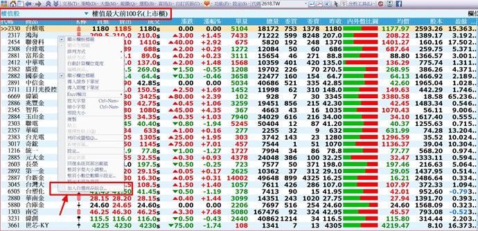 1.將"權值股"加入報價組合只是當下的商品及排序,無法連同每天的變化都一起加入。