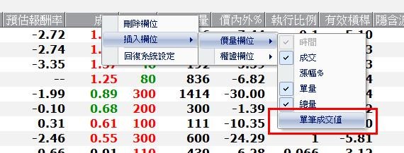你好 我翻閱過去權證模組的掃描權證發現以前有每筆的成交值