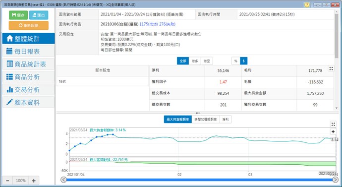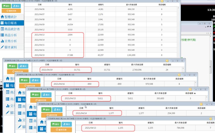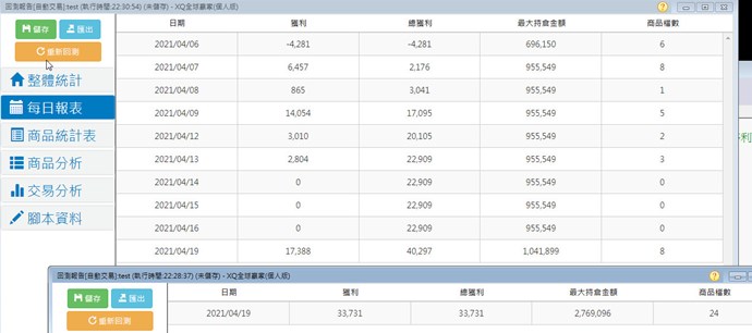 只要回測日期大於一天,淨利與商品檔數就變得都不一樣了