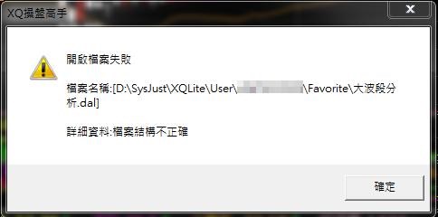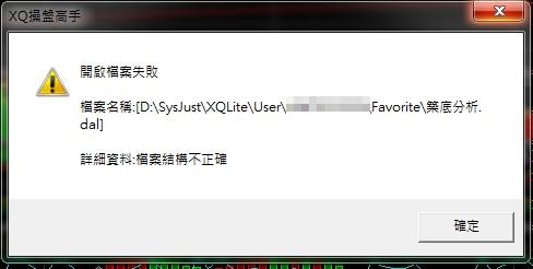 1. 關閉程式後,至「C:\SysJust\XQLite\User\您的帳號\Favorite\」,移除我的最愛該檔的dal (大波段分析.dal)