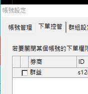 群益的帳號則是可以登入,但下單控管都無法勾選