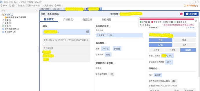 執行商品試過:FITXST*1(台指近月價差)、FITXN11-12 (台股指數112-122)