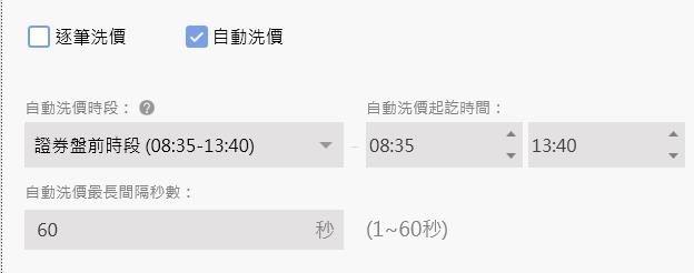 這是實戰的設定。不需要勾選自動洗價。回測的設定視窗,逐筆洗價不要打勾。