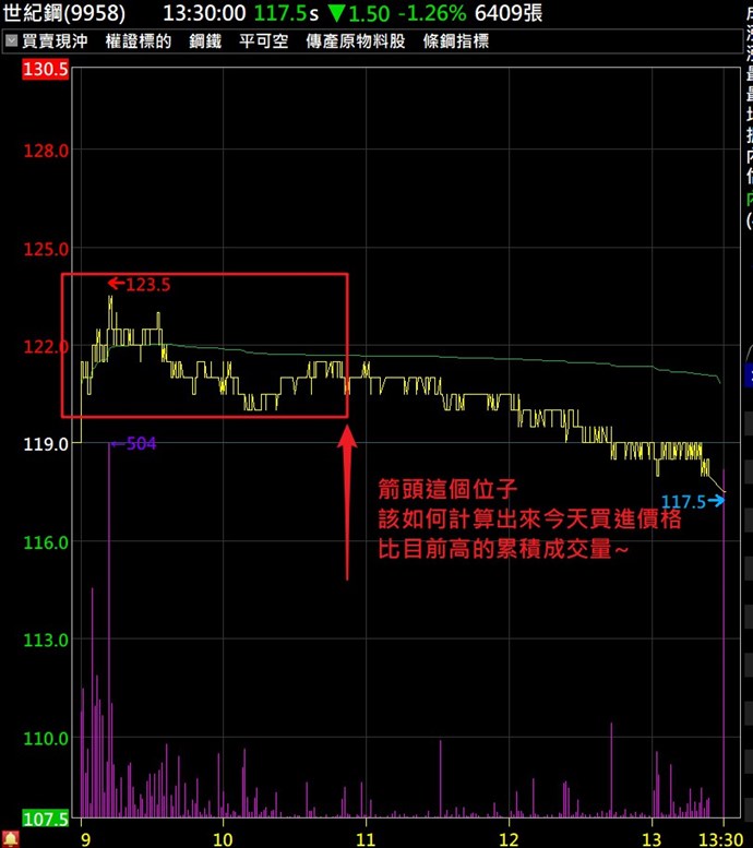 假如目前這個TICK價格是50~~那只今天前面有出現過超過價格50的成交的成交量都計算加總~
