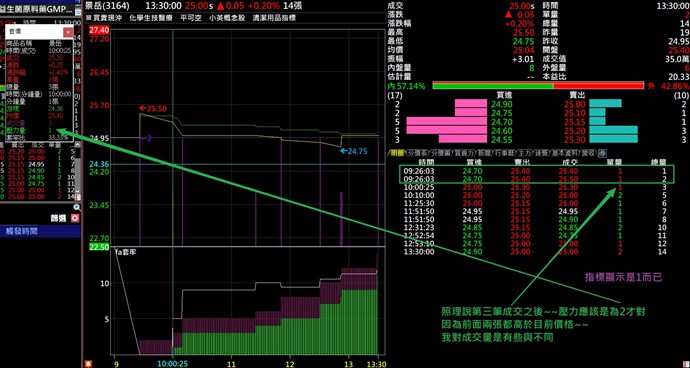 謝謝小編的回覆~想計算就是目前這一個TICK價格~~去比較今天所有的成交價格高於這個TICK成交量的累積計算~