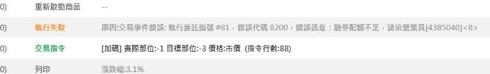 但加碼的時候,第二筆單融券賣出後,因為券商那邊已經沒有券額,造成執行失敗而讓該商品停止,這部分可以利用什麼方式解決嗎?