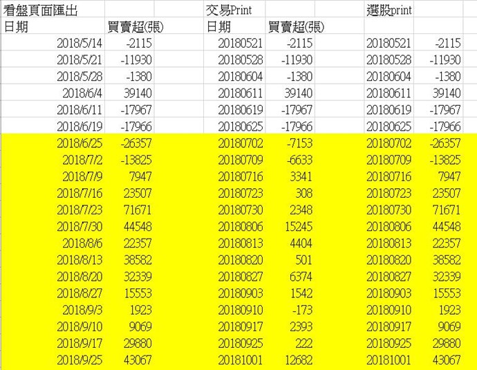 指標匯出跟雷達print出來的買賣超數據是一樣的,但是交易模組Print出來的數據不同,