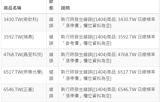 在交易使用getfield取參考價或漲停價做比較時,有些個股會出現資料為空的錯誤