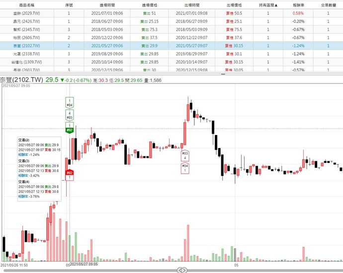 但是我發現很多筆交易的持有區間都是1,進場以後,下一分鐘又出場(價位也沒觸發停損,更不可能是尾盤),請問為什麼會有這種情形,謝謝