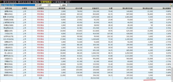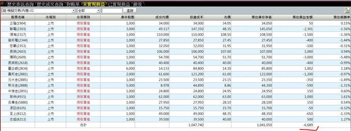 且有些自動交易記錄到的庫存並沒有出現在未實現損益中。