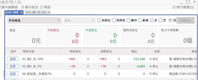 另外,庫存進場出場的已實現損益只會保留在當次執行中。