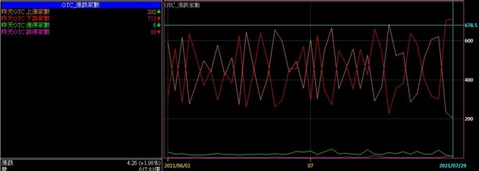 在 2021/07/29 用GetSymbolField("OTC.TW","上漲家數", "D")[1]