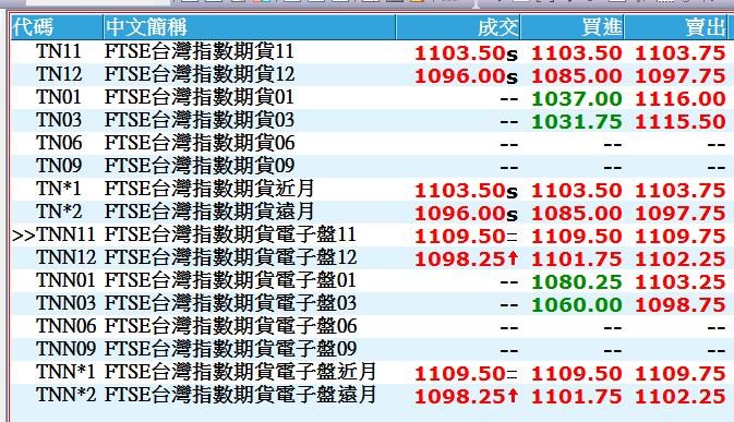 您好,如果需要查看夜盤報價,請查詢有帶"N" 的商品(如下圖)。