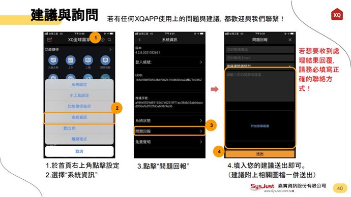 若仍有問題,請使用手機問題回報功能,如附檔圖,以利釐清問題的原因,謝謝。