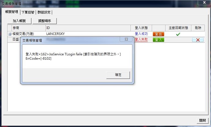 我在設定日盛交易帳號時會出現錯誤訊息,如下圖
