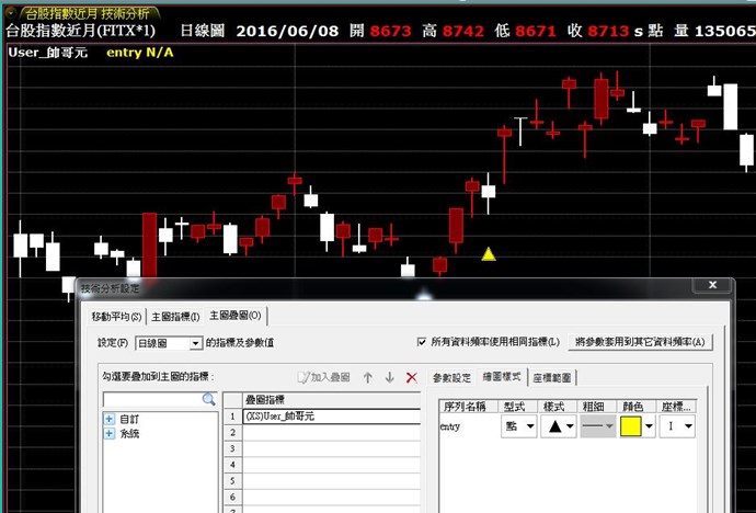 請問,編譯沒問題,為何主圖疊圖上,沒辦法顯示出進場訊號