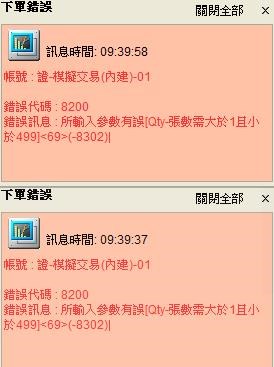 目前我們有發現策略雷達帶下單,會出現輸入參數有誤等情形