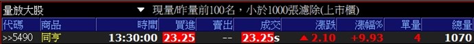 根據XQ特別報價-量放大股的說明: "現量 / 昨量 前100名,小於1000濾除"